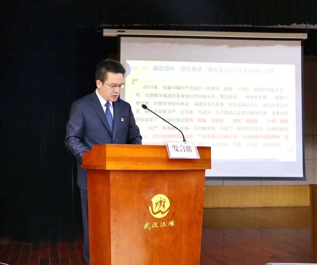? ? ? ?他指出,在看到成績的同時,也要清醒認識集團還存在核心主業不突出、經營業務分散、高端人才匱乏等不足,新的一年碧水集團要在黨建引領上做示范、在城建投資上挑大梁、在轉型發展上當先鋒、在產融結合上打頭陣、在管理提效上作表率,時刻保持“拼搶實”的狀態和作風,全力以赴做好經濟工作,努力實現更高質量、更可持續的發展。