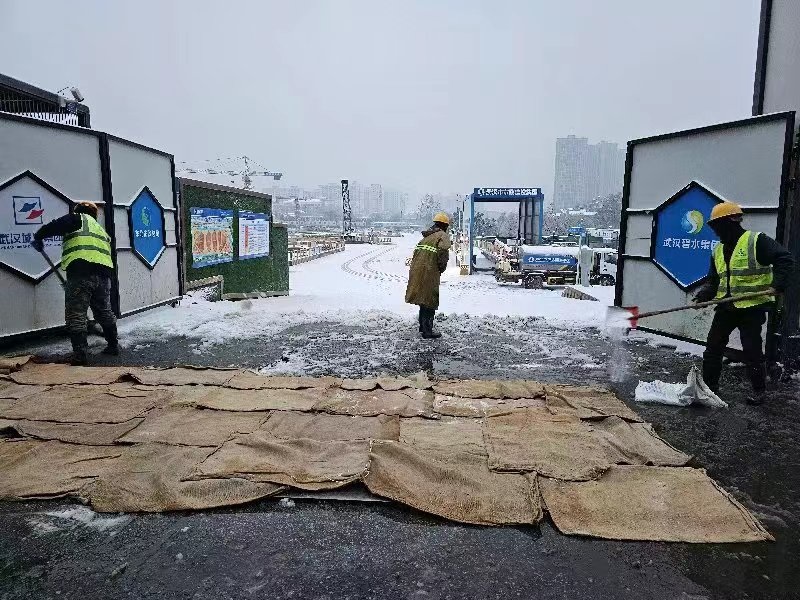 ? ? ? ?巡司河綜合治理二期項(xiàng)目投入除雪作業(yè)人員29人,鋪設(shè)麻袋150件,除雪鏟車一臺(tái),除雪鹽15袋,保障白沙洲大道及南湖部分路段行車安全;巡司河綜合治理一期項(xiàng)目突擊隊(duì)51人,頂風(fēng)冒雪,全力清除項(xiàng)目施工區(qū)域及武梁路面上的積雪;巡司河街污水管道及跨復(fù)興路箱涵工程總承包(EPC)項(xiàng)目齊心協(xié)力,分工明確,高效配合,對(duì)現(xiàn)場(chǎng)電纜線及水管已進(jìn)行防寒保護(hù),聯(lián)合社區(qū)對(duì)工地周邊道路除雪去冰;青山濕地二期項(xiàng)目部組織18人突擊隊(duì)、鏟車1臺(tái),拋撒工業(yè)鹽0.5噸,草墊麻袋10捆,為青山汽渡碼頭道路、輪渡碼頭行人通道及周邊住戶掃除積雪;南湖生態(tài)活水項(xiàng)目補(bǔ)水通道工程突擊隊(duì)20人,拋灑2噸融雪劑,對(duì)項(xiàng)目?jī)?nèi)部道路及周邊近2公里道路進(jìn)行融雪除冰。