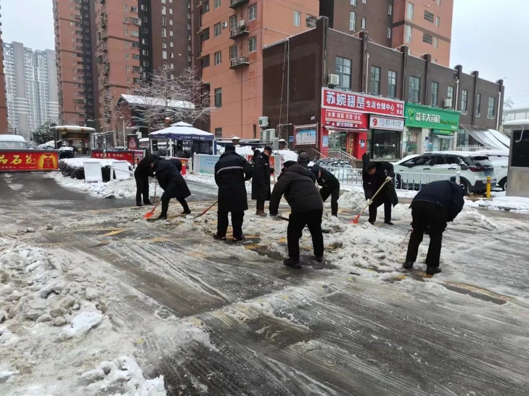 ? ? ? ?為應(yīng)對(duì)低溫雨雪冰凍天氣,武碧綜發(fā)公司全員行動(dòng)迅速成立掃雪隊(duì)伍,對(duì)公司各項(xiàng)目小區(qū)道路和周邊道路的積雪、覆冰進(jìn)行清掃,并及時(shí)拋灑融雪劑、鋪設(shè)麻袋、草墊等防滑物資,確保各出入口及通行區(qū)域無(wú)積雪結(jié)冰,全力保障居民的出行安全。