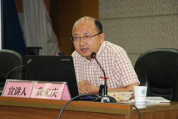 為深入學(xué)習(xí)貫徹習(xí)近平新時(shí)代中國(guó)特色社會(huì)主義思想和習(xí)近平總書記在全國(guó)兩會(huì)期間系列重要講話精神,堅(jiān)定不移推進(jìn)全面從嚴(yán)治黨向基層延伸,根據(jù)市委統(tǒng)一部署和集團(tuán)公司黨委安排。5月18日,碧水集團(tuán)舉辦了“市委講師團(tuán)點(diǎn)單宣講活動(dòng)走進(jìn)武漢碧水集團(tuán)”暨黨委中心組(擴(kuò)大)學(xué)習(xí)會(huì),邀請(qǐng)到了省委講師團(tuán)成員、中南財(cái)經(jīng)政法大學(xué)馬克思主義學(xué)院院長(zhǎng)龔先慶教授為全體黨員干部開展了一場(chǎng)題為“堅(jiān)定不移推進(jìn)全面從嚴(yán)治黨”的精彩宣講。集團(tuán)黨委書記、董事長(zhǎng)丁心紅,黨委副書記、紀(jì)委書記夏斌,副總經(jīng)理呂善功、劉霖,集團(tuán)及各所屬企業(yè)140余名黨員參加了宣講會(huì)。